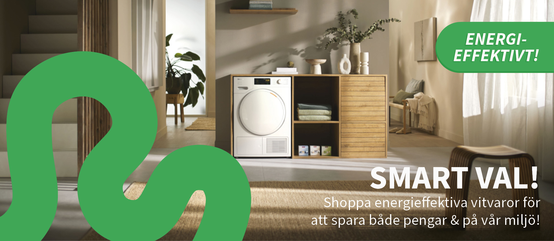 Här hittar du vitvaror som håller en hög energieffektivitet, baserat på sin energimärkning. Vitvarorna är de maskiner i hemmet där vi verkligen kan göra skillnad för vår energiåtgång och det kan skilja många hundralappar per år att välja rätt maskin och givetvis rätt elavtal. Läs gärna mer om energimärkningen på Energimyndighetens hemsida. EU-länderna har beslutat att energimärkningen med skalan A+++ till D skulle ändras och ersättas av skalan A till G. Färgerna på pilarna är de samma. Den nya etiketten har införts för ett flertal produkter från år 2021.