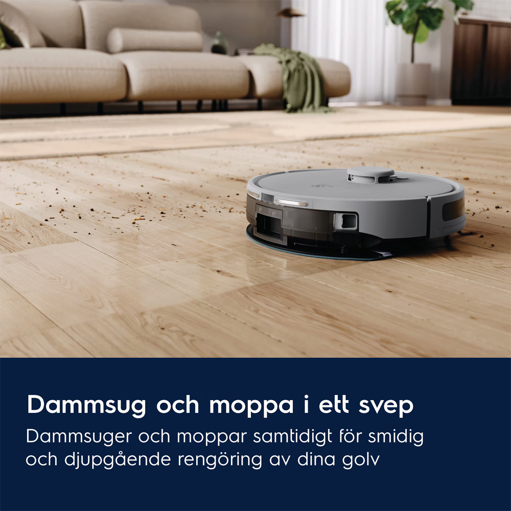 Dammsug och moppa i ett och samma moment. Den smarta 2-i-1-funktionen gör att roboten både dammsuger och moppar hårda golv i ett svep. Det ger effektiv rengöring av större ytor utan avbrott och bidrar till ett fräschare och mer hygieniskt hem.