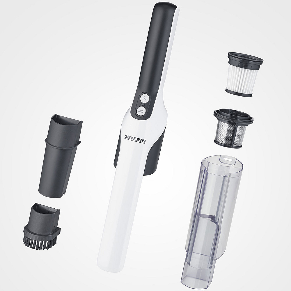 Handdammsugaren är laddbar och tystgående, och levereras med laddstation, tvättbart filter och enkel tömning av dammbehållaren - allt för bekvämt och hygieniskt underhåll.