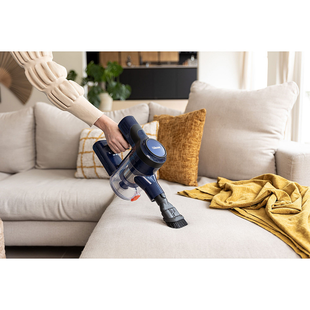 Gör städningen enkel med denna högeffektiva sladdlösa dammsugare utrustad med en stark 150 W-motor och lång batteritid på upp till 40 minuter. Perfekt för både vardagsstädning och snabb rengöring av större ytor.