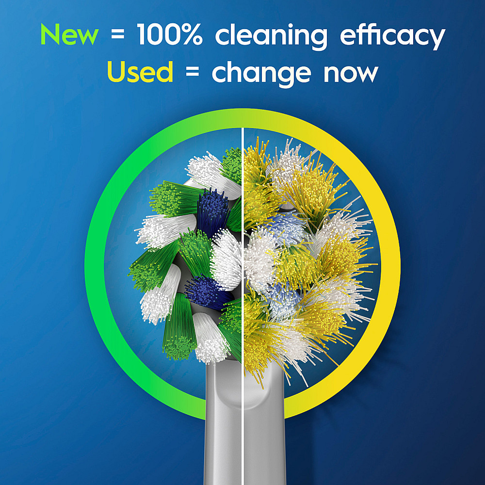 Daglig bekvämlighet Det tandläkarinspirerade borsthuvudet omsluter varje tand för noggrann men skonsam rengöring. Borsthuvudet bleknar från grönt till gult för att visa när det är dags att byta och bibehålla optimal rengöringseffektivitet.