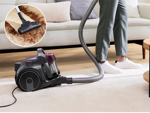 Den ergonomiska designen gör dammsugaren lätt att bära, manövrera och förvara. Handtaget och balansen är utformade för att ge maximal komfort, så du kan städa hela hemmet utan ansträngning.