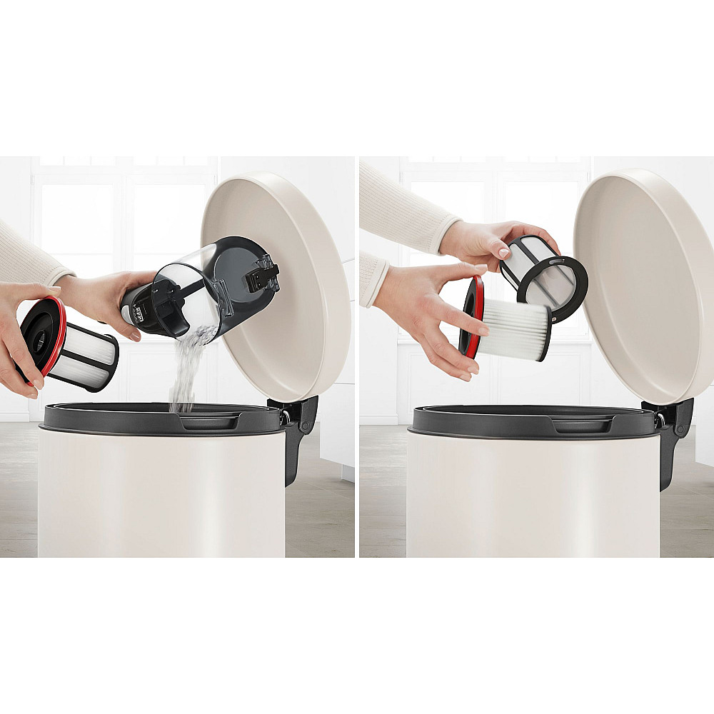 Unlimited Serie 6 har en låg vikt och ergonomisk design som gör den mycket enkel att använda. Handenheten väger endast 1,4 kg, och tillsammans med munstycke och rör blir totalvikten 2,3 kg. Den kompakta konstruktionen gör att du lätt kommer åt även svåråtkomliga ställen och kan städa längre utan att bli trött.