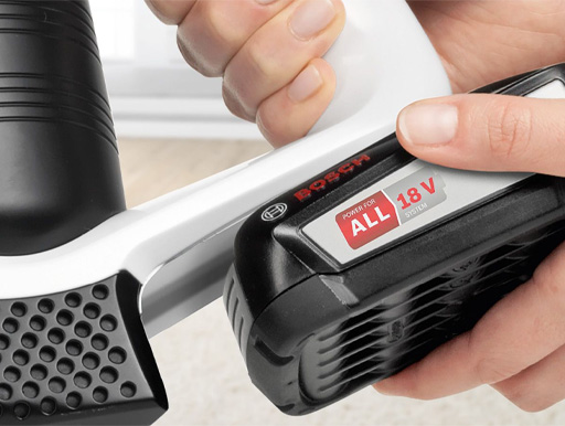 Med det utbytbara batteriet får du friheten att städa utan avbrott. Använd två batterier tillsammans med en snabbladdare för att alltid ha ett fulladdat batteri redo. Batteriet är dessutom en del av Power For ALL Alliance, vilket innebär att det passar flera andra Bosch 18V-produkter inom Home & Garden-serien.