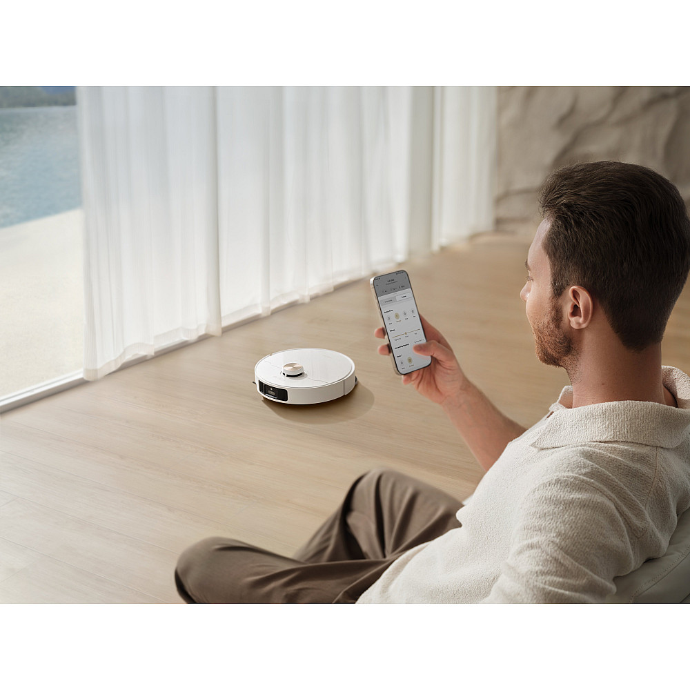 Robotdammsugaren rengör smidigt under låga möbler och når djupt in i hörn med sin MopExtend funktion som förlänger mopparna upp till fyra centimeter. Den tar bort envis smuts och ger en jämn och skinande yta i hela hemmet.
