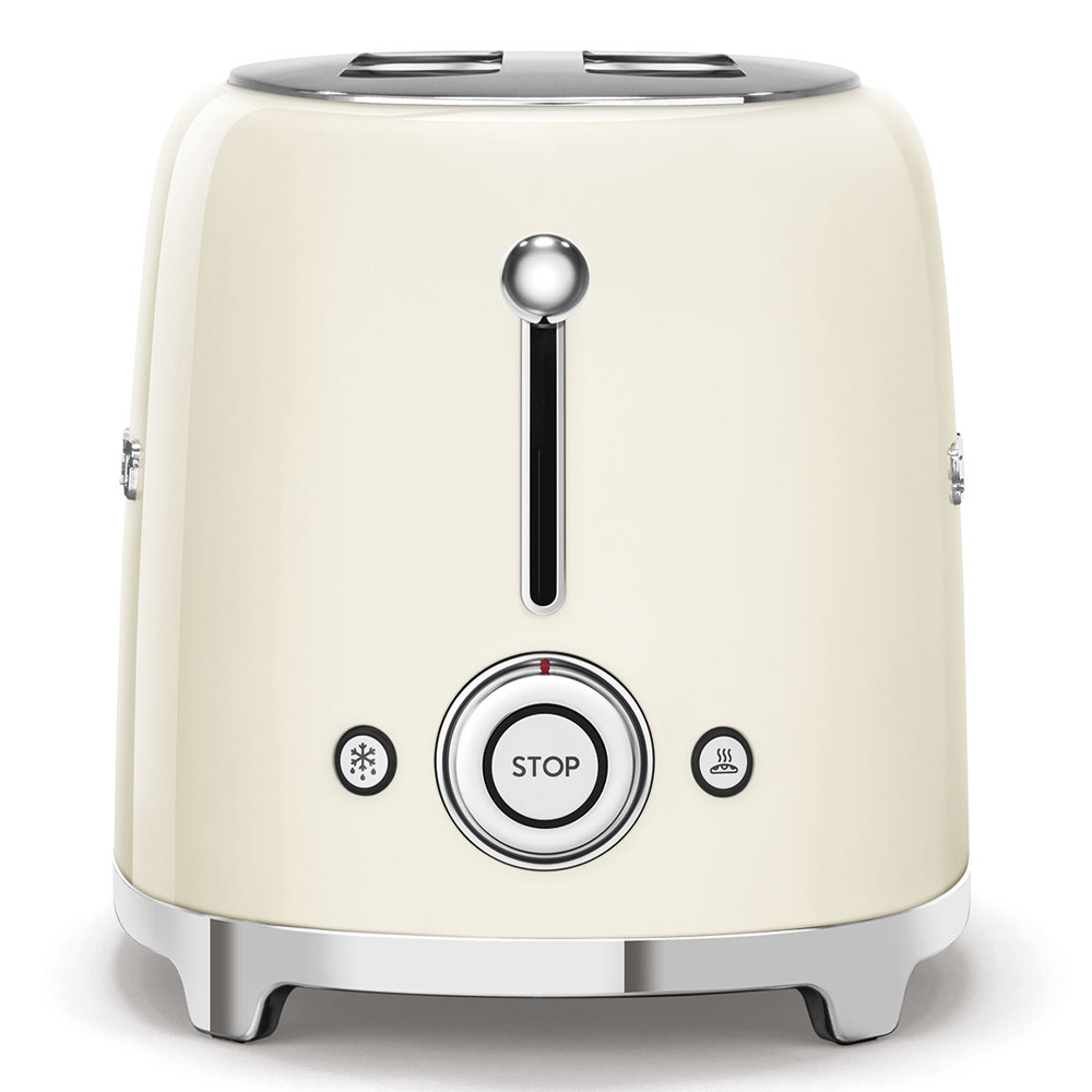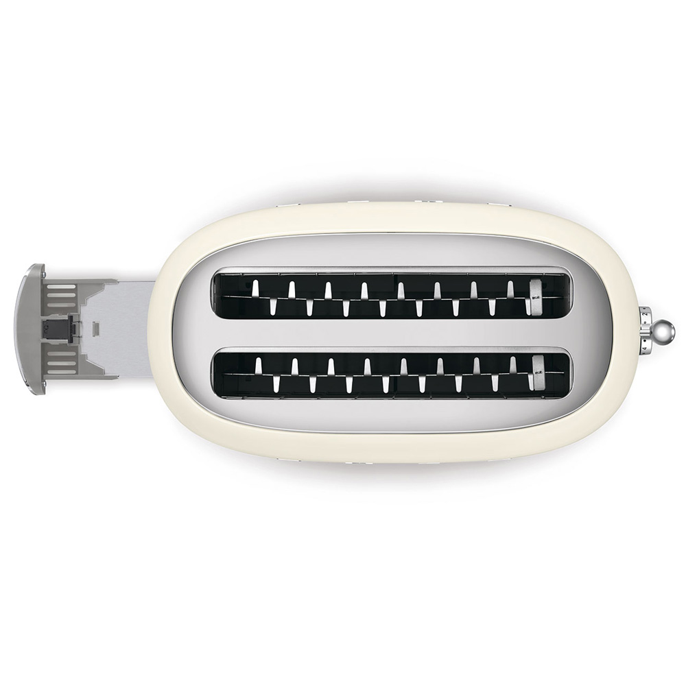 SMEGs brödrostar är vackert gjorda i lackerat stål och har extra breda fack som är perfekta för tjockt bröd och bagels. Andra funktioner inkluderar sex rostnivåer, fyra funktioner (avfrostning, återuppvärmning, stoppknapp och bagel-inställning), upplysta vred och en löstagbar smulbricka av rostfritt stål. Den inbyggda sladden håller saker snygga och städat medan de gummitassarna säkerställer att allt stannar på plats. Extra tillbehör som kan köpas till inkluderar ett toastgaller och en bullvärmare.