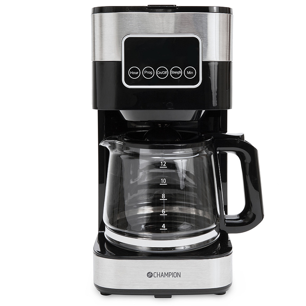 Med Champions digitala kaffebryggare kan du vakna upp till nybryggt kaffe varje morgon. Fyll på med kaffe och vatten kvällen innan, ställ in timern på önskad tid och låt bryggaren sköta resten. Den rymliga kannan rymmer tolv koppar och håller kaffet varmt tack vare den inbyggda varmhållningsfunktionen.