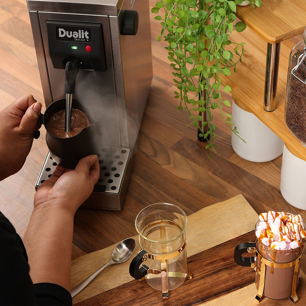 Dualit Cino Milk Steamer är utvecklad för att skapa mjölk av baristakvalitet, oavsett om du vill ha silkeslent skum till cappuccino eller perfekt ångad mjölk till latte. Den levererar ett lyxigt resultat varje gång.
