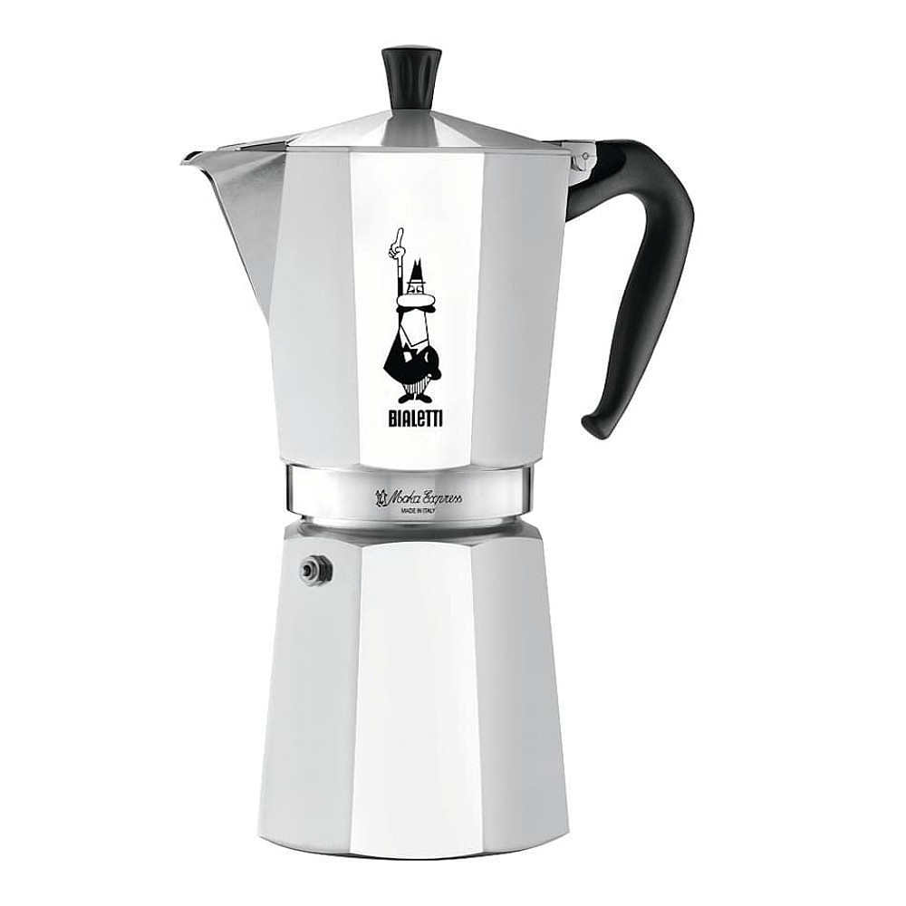 Bialetti Moka Express 12 koppar är den största standardstorleken och är avsedd för bryggning av stora mängder mokkakaffe i ett enda moment.