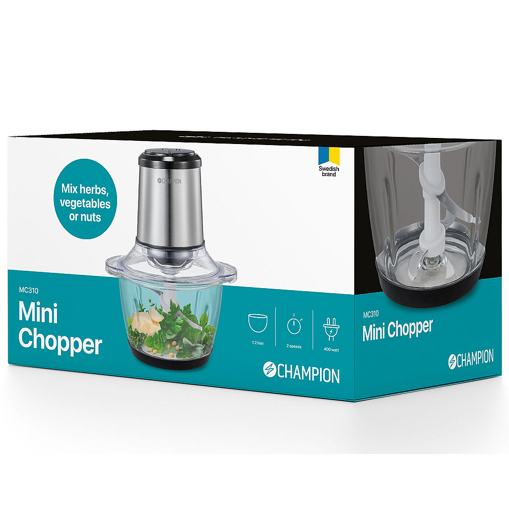 Champions Mini Chopper är det perfekta verktyget för dig som vill hacka ingredienser snabbt och smidigt. Med ett enkelt knapptryck hackar du allt från lök och örter till chili och nötter, och får snabbt fram ingredienser till grytor, sallader och andra rätter.