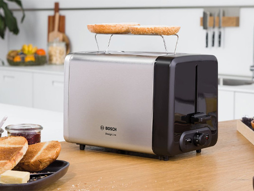 Modern design som lyfter hela köket. Den stilrena ytan i rostfritt stål med mjuka linjer och mattblanka detaljer gör brödrosten till en snygg detalj på köksbänken. Bosch har kombinerat design och funktion för att skapa en produkt som både presterar och ser fantastisk ut.