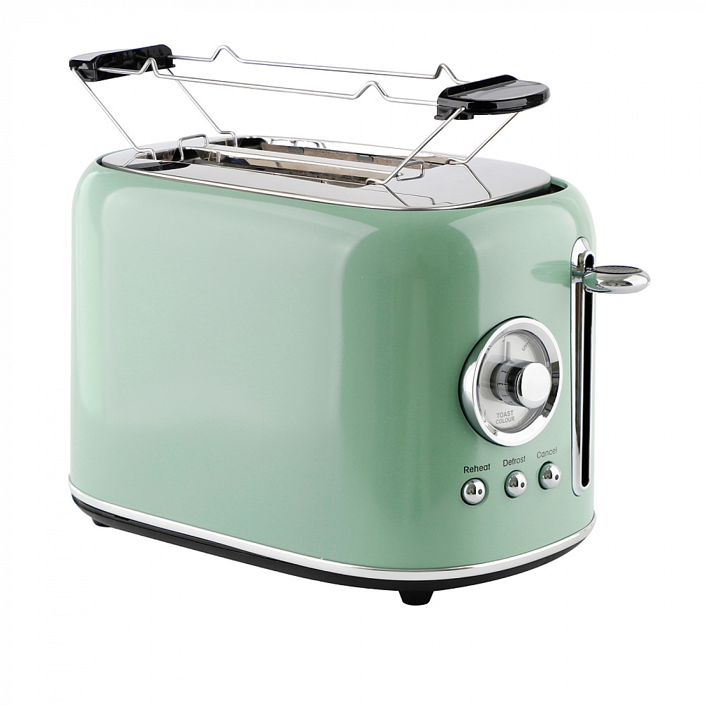Emerio TO-133281 är en snygg brödrost i retrostil i grön design som passar perfekt i köket. den rostar två skivor åt gången och ger ett jämnt resultat oavsett om brödet är färskt eller fryst.