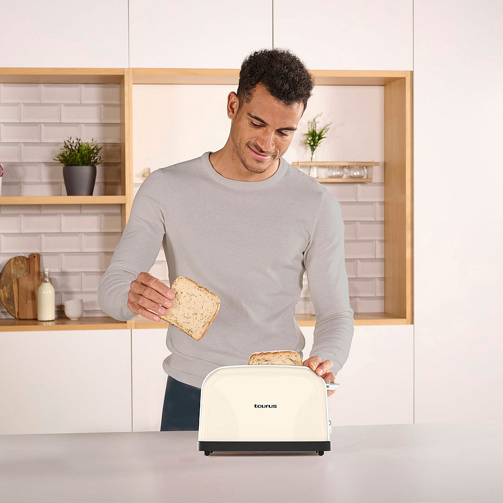 Stilren Taurus Vintage 2 kombinerar tidlös vintage-design med effektiv prestanda, där 950 W effekt och två fack på 135 × 35 mm ger jämn och pålitlig rostning varje morgon.