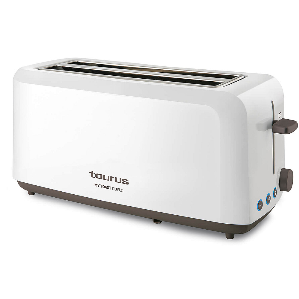 Kraftfull Taurus Mytoast Duplo är en brödrost med 1450 W effekt och två extra långa fack som gör det enkelt att rosta större brödskivor, baguetter eller flera skivor samtidigt med jämnt resultat.