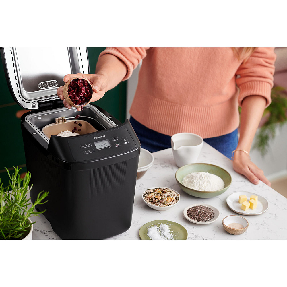 Hälsosamt hembakat bröd varje dag blir enkelt med Panasonic SD-PN100. Den lilla brödstorleken på ca 400 g passar perfekt för mindre hushåll och minskar matsvinnet. Här bakar du allt från söta och salta bröd till pizza, pasta och glutenfria alternativ - alltid utan tillsatser och konserveringsmedel.