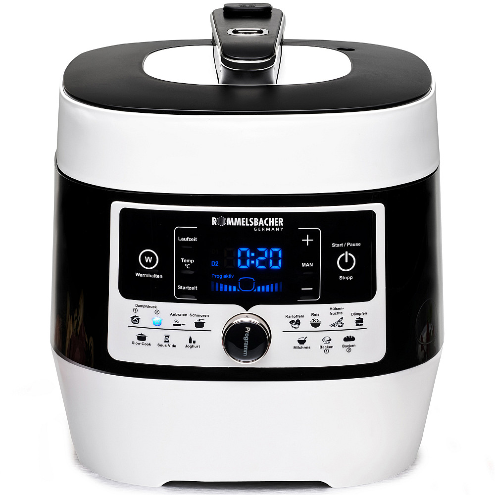 Den stora nonstick grytan rymmer sex liter och är enkel att ta ur och rengöra. Med startfördröjning varmhållning upp till en timme två trycknivåer tydlig LED display och ett omfattande säkerhetssystem blir matlagningen trygg snabb och smidig i alla situationer.