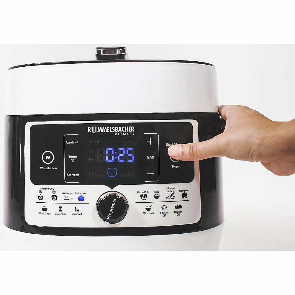 De fjorton programmen gör att du kan ångkoka tryckkoka bräsera rosta baka eller arbeta med moderna metoder som slow cooking och sous vide. Den avancerade elektroniken sköter tillagningen automatiskt men kan även justeras manuellt för den som vill ha total kontroll.
