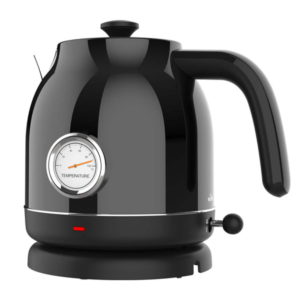 Upptäck den vackra och eleganta retrodesignen på vår vattenkokare! Med en kapacitet på 1,5 liter och en effekt på 2000-2400W kan du snabbt och enkelt koka vatten för dina favoritdrycker. Tänd-/släckindikatorn med belysning gör det enkelt att veta när vattnet är klart, och den avtagbara locken och dolda värmeelementet gör den lätt att rengöra. Med vattennivåindikatorn på insidan av kannan kan du enkelt se hur mycket vatten som finns kvar. Köp vår vattenkokare med spänning på 220-240V och njut av en retrolook i ditt kök!