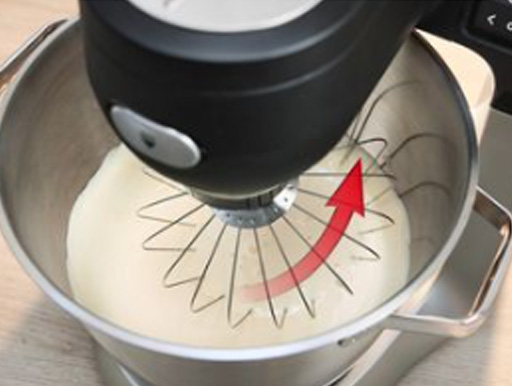Det automatiska parkeringsläget gör det lätt att fylla på ingredienser. När maskinen stannar hamnar visp och degkrok alltid baktill i bunken, vilket skapar extra utrymme framtill för enkel påfyllning - utan spill.