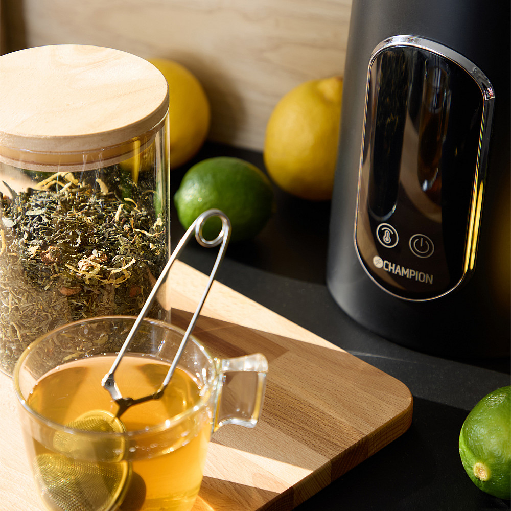 Champion vattenkokare Digital Temp är ett perfekt val för dig som vill ha full kontroll på vattnets temperatur. Den mattsvarta designen kombineras med avancerade funktioner som gör den idealisk för teälskare, barnfamiljer och professionella kök.