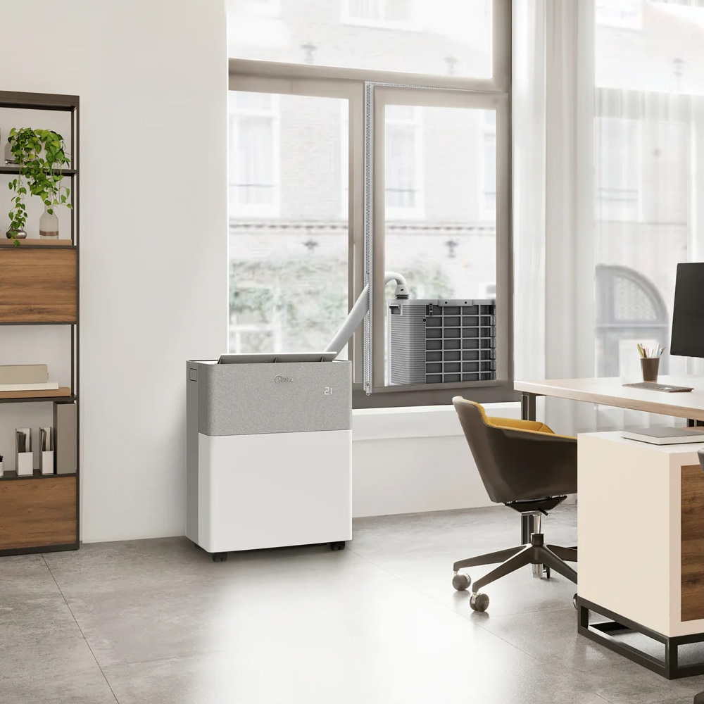 PortaSplit teknologi för högre verkningsgrad. Till skillnad från vanliga portabla luftkonditioneringar leds värmen bort via en integrerad värmeväxlare istället för att ventileras direkt ut ur rummet. Detta ger effektivare drift, bättre temperaturkontroll och lägre ljudnivå vid kontinuerlig användning.