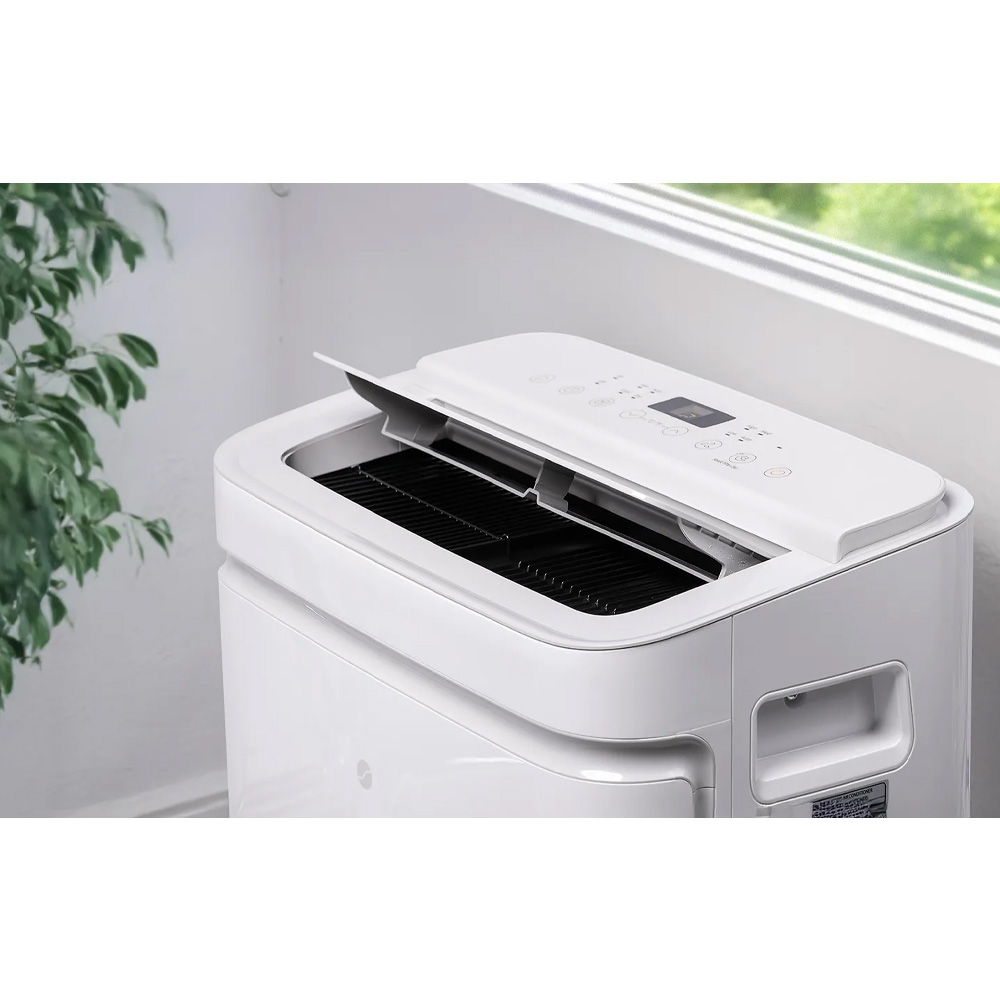 Kombinerad luftbehandling. Enheten hanterar både kylning och fuktreglering vilket bidrar till förbättrad komfort. Ventilationsfunktionen möjliggör luftcirkulation utan aktiv kylning.