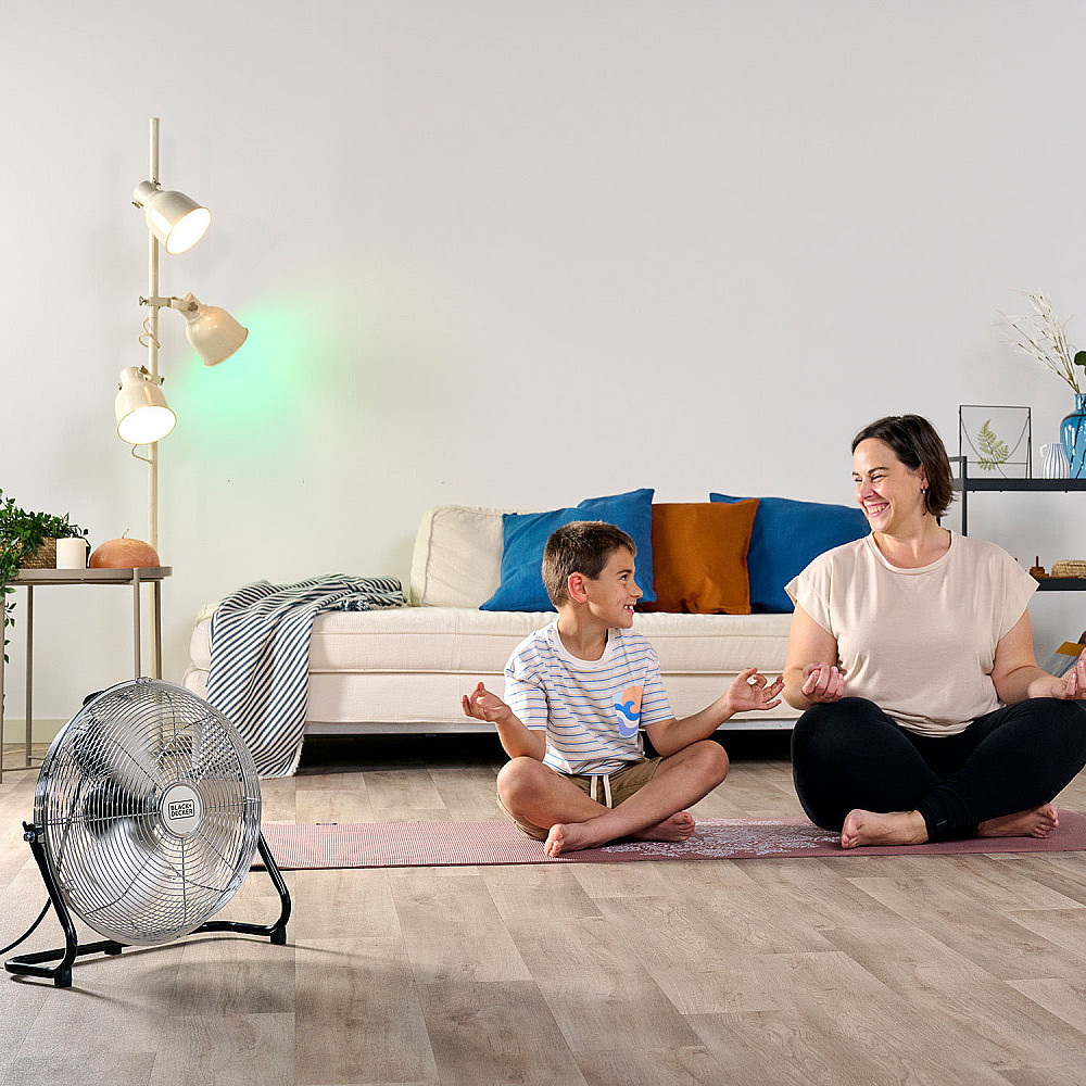 Utformad för snabb och tydlig svalka. Black+Decker golvfläkt är konstruerad för att snabbt flytta stora mängder luft och skapa omedelbar komfort i både hem och arbetsmiljöer. Den passar särskilt bra i rum där temperaturen snabbt behöver sänkas under varma dagar.
