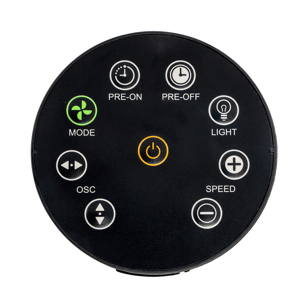 Smart och användarvänlig konstruktion. Den magnetiska fjärrkontrollen fästs direkt på fläkten för enkel åtkomst. Timerfunktionen gör det möjligt att automatisera driften, vilket gör modellen särskilt praktisk i sovrum, hemmakontor och träningsutrymmen.