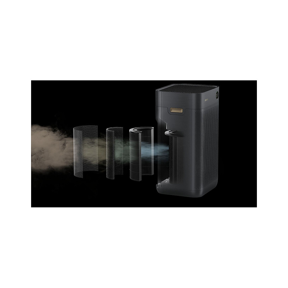 Avancerad flerlagersfiltrering. Det integrerade 4 i 1 filtret kombinerar förfilter, aktivt kol, HEPA filter och skyddslager. Denna uppbyggnad fångar effektivt upp partiklar såsom damm, pollen, rök, mögelsporer och allergener samt bidrar till reducering av bakterier och virus.