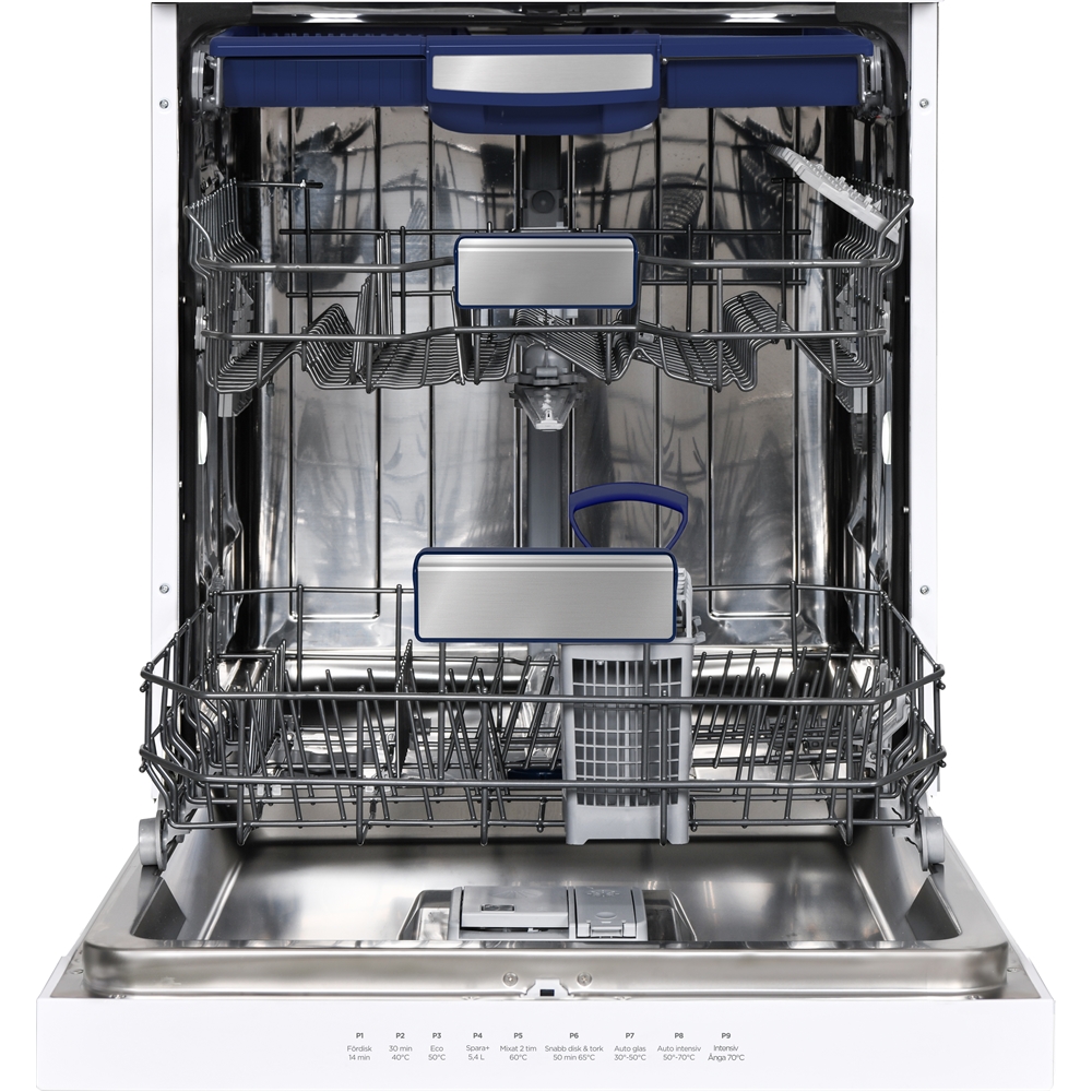 En integrerad LED-belysning ger tydlig överblick över hela diskmaskinens innehåll. Modellen har en toppkorg och en höj- och sänkbar överkorg som gör det enkelt att anpassa utrymmet efter större kastruller, tallrikar eller glas.