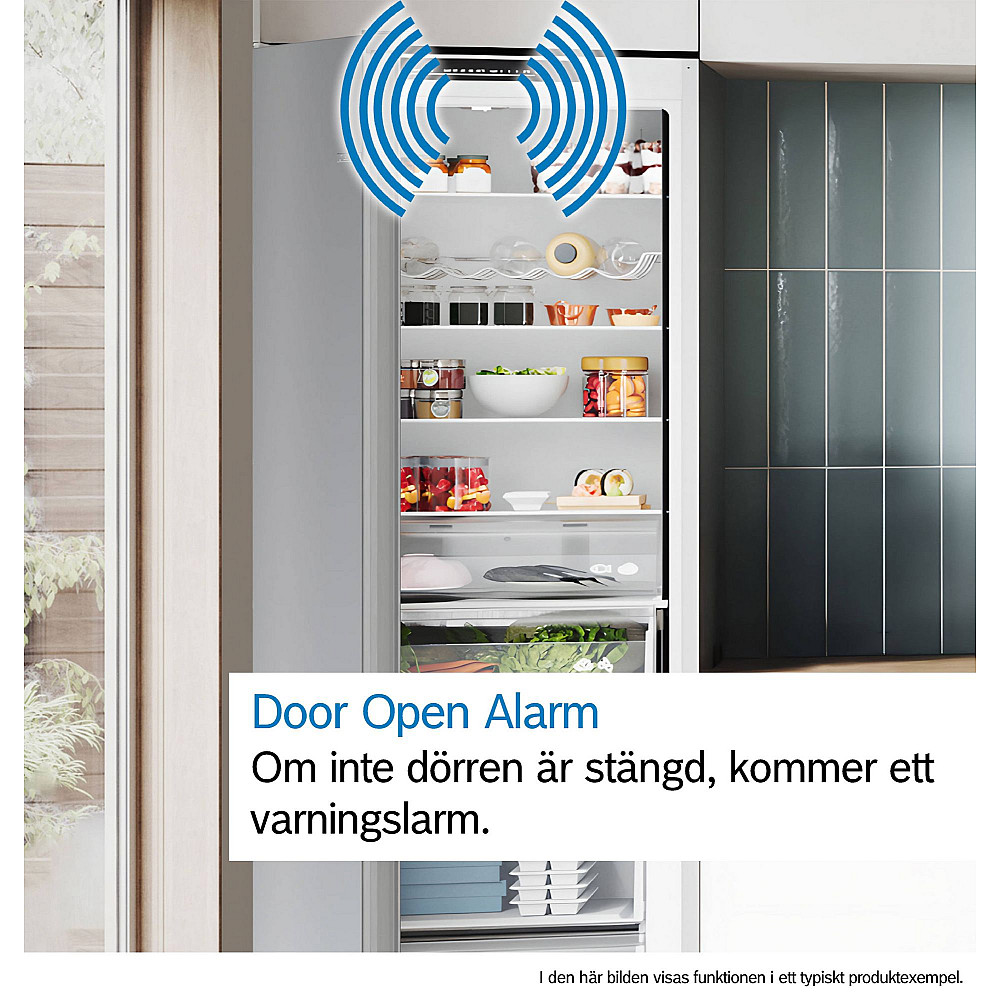 Praktiskt larm för ökad trygghet Ett ljudlarm aktiveras om dörren inte stängs ordentligt. Det hjälper dig att undvika energiförlust och skyddar maten från att tina.