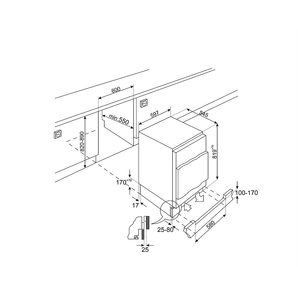 Praktisk integrerad frys i universaldesign som passar perfekt under bänk i kök med inbyggnadsmått 8287 cm. Den platta vita fronten och door to door-gångjärnen gör att frysen smälter in sömlöst i köksinredningen. Den högra dörrhängningen är dessutom omhängningsbar, vilket gör installationen flexibel efter utrymme.