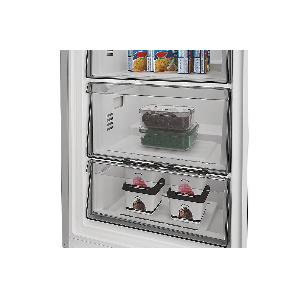 Rymlig kapacitet och genomtänkt förvaring: Whirlpool WHMFF 6312 XP41 erbjuder en generös frysvolym som gör det enkelt att förvara både vardagliga matvaror och större fryspartier. Modellen har en smart fördelad inredning med flera lådor och hyllor som skapar en tydlig översikt och gör det enkelt att snabb hitta det du söker. De robusta materialen och den solida konstruktionen är utformade för att tåla regelbunden användning.
