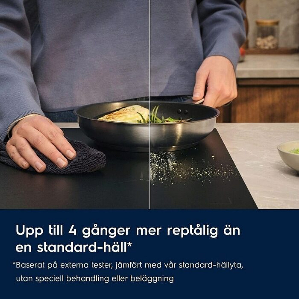 SaphirMatt för elegant och tålig design. Den mattsvarta SaphirMatt ytan ger hällen ett exklusivt utseende och är samtidigt mer reptålig än traditionella glashällar. Ytan hjälper även till att minska synliga fingeravtryck, vilket gör hällen enklare att hålla snygg i vardagen.