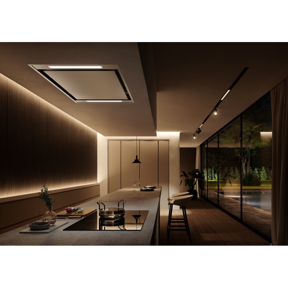 Designad för stilrena köksmiljöer. Kombinationen av takintegrerad konstruktion och rostfritt stål gör fläkten till ett funktionellt och elegant val för moderna kök.