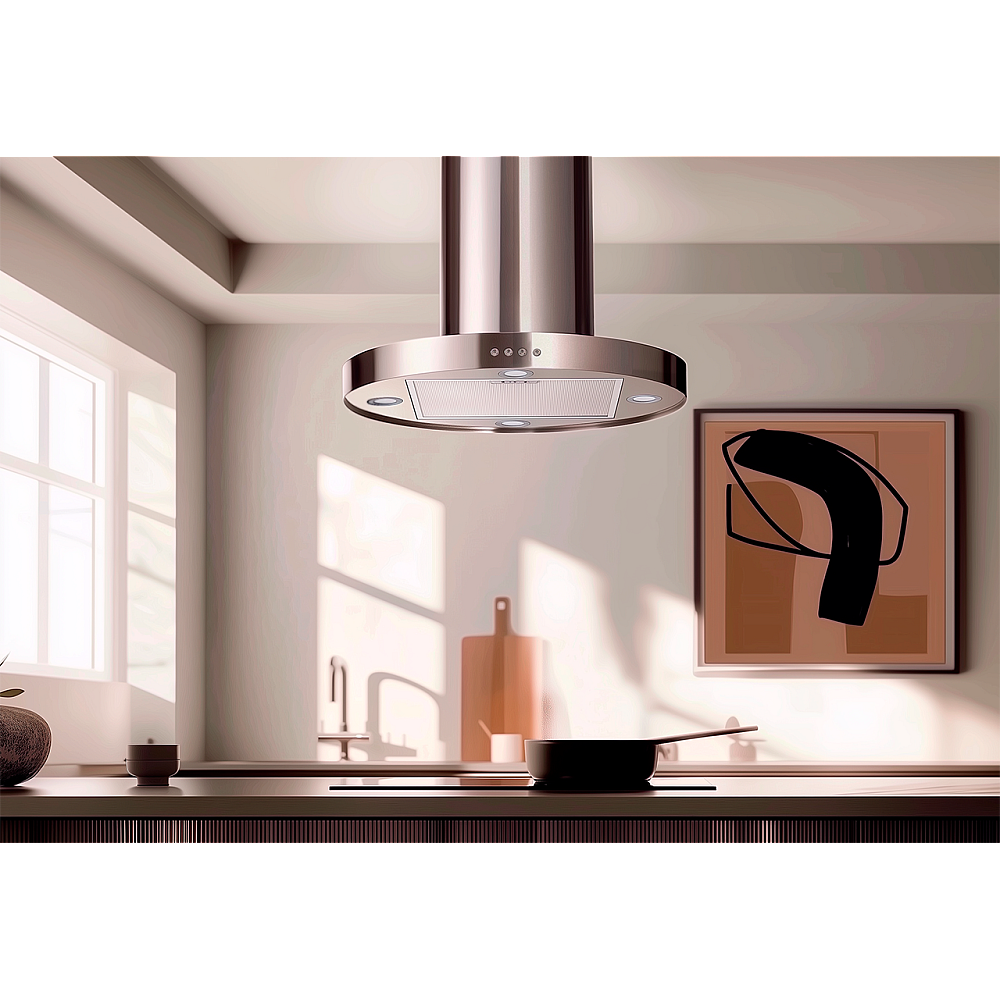 Thermex Oxford II är en stilfull och effektiv frihängande köksfläkt som passar perfekt ovanför köksöar i moderna hem. Den cylinderformade designen i rostfritt stål ger ett tidlöst och harmoniskt uttryck samtidigt som den blir ett naturligt blickfång i köket. Med en diameter på 60 cm täcker den spishällen väl och bidrar till en snygg och funktionell helhet.