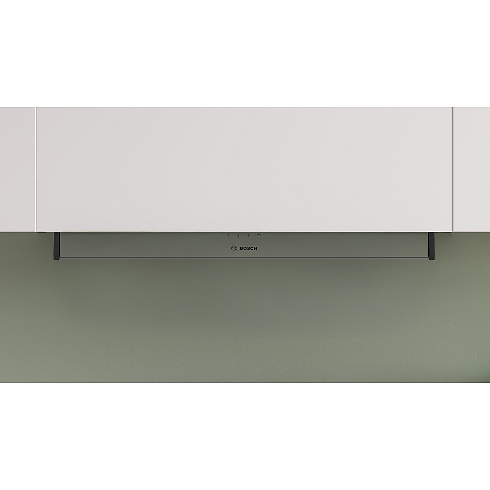 Diskret och integrerad lösning. Denna köksfläkt är utvecklad för montering i ett 80 cm brett överskåp och ger ett stilrent, sammanhållet intryck i köket. Den infällda konstruktionen gör att fläkten smälter in naturligt i inredningen medan klarglaspanelen tillför en modern detalj.