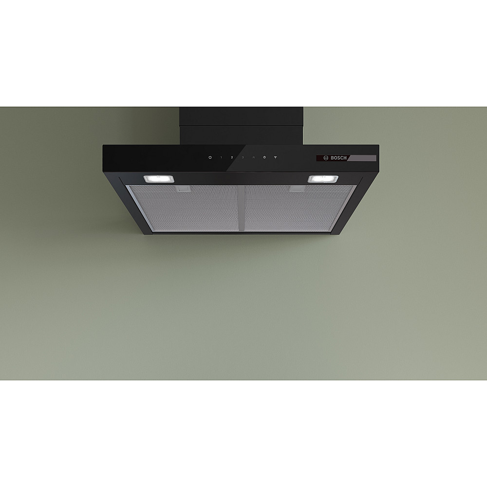 Stilren design med smart funktion. Den här vägghängda köksfläkten från Bosch kombinerar modern glasfront med avancerad teknik. Den integrerade kontrollpanelen ger ett elegant uttryck och gör fläkten enkel att använda.