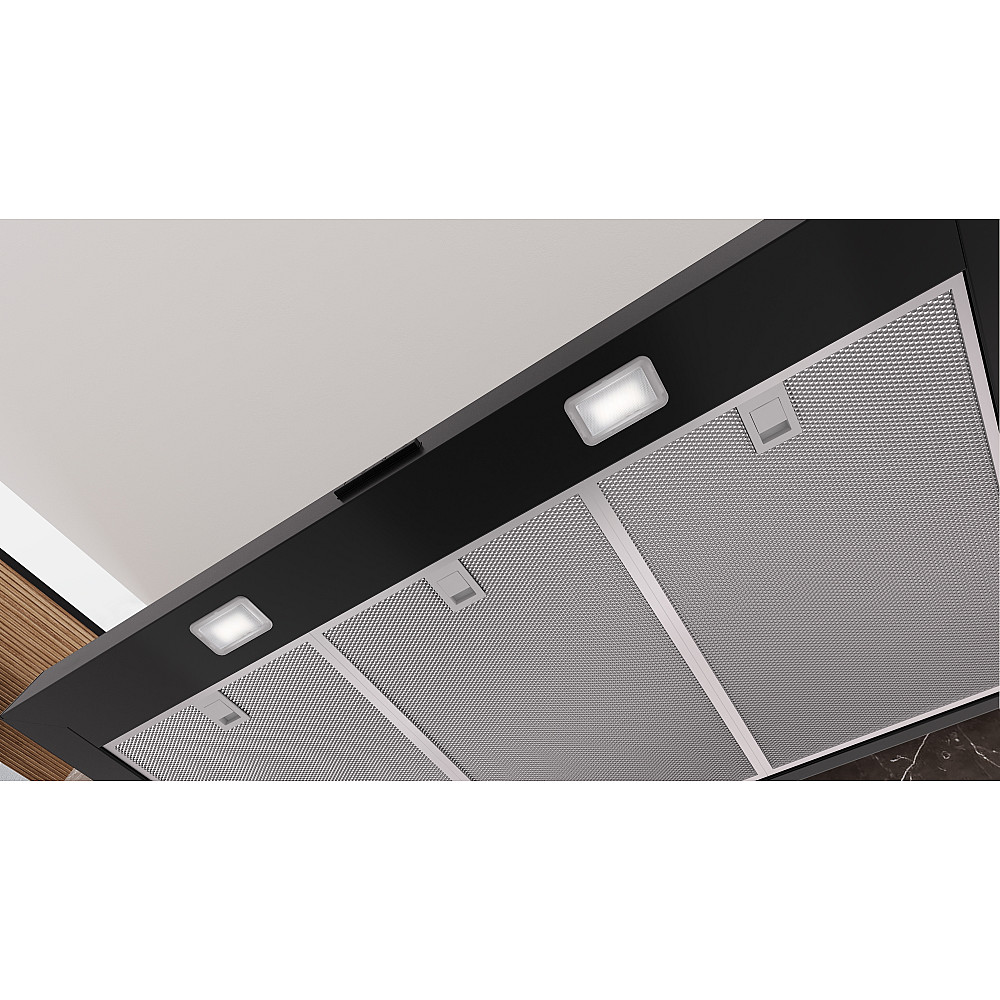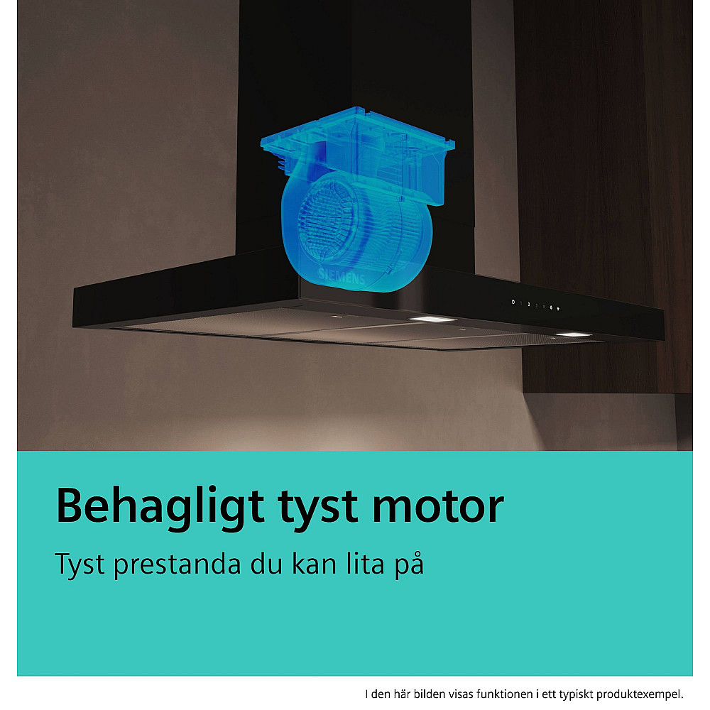 Stilren boxDesign i mattsvart. Siemens LC95BCC60 iQ300 är en vägghängd köksfläkt som kombinerar modern design med praktisk funktion. Den mattsvarta finishen ger köket ett elegant och samtida uttryck.