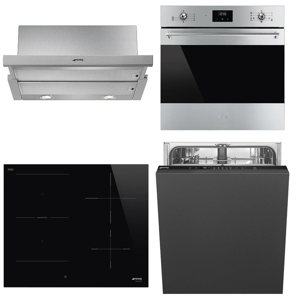Smeg kökspaket med ugn, induktionshäll, diskmaskin och fläkt