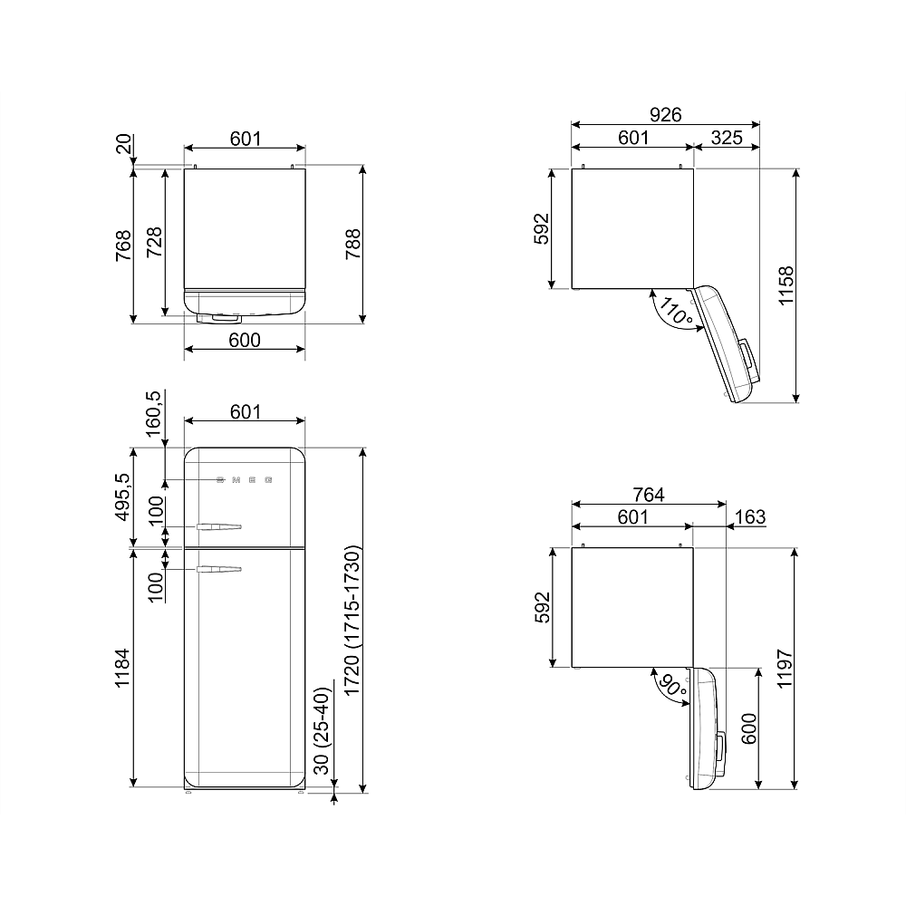 Produktmått: Bredd 60 cm, Djup 72,8 cm, Höjd 172 cm