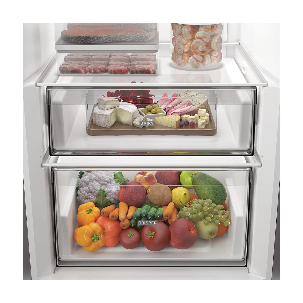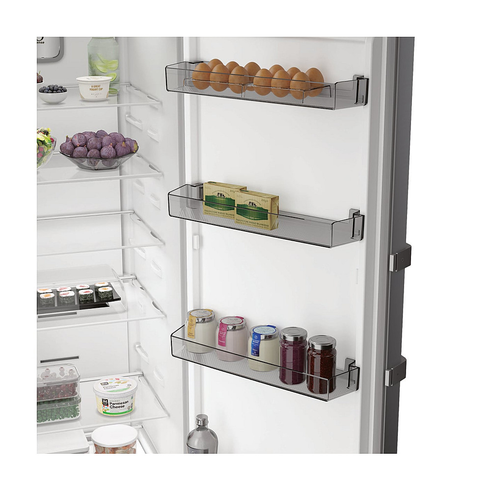 Gott om utrymme: Med en total kapacitet på 365 liter erbjuder modellen generös förvaring för hela familjens livsmedel. Hyllorna och dörrfacken är utformade för att maximera tillgänglig yta och skapa ett naturligt flöde, vilket ger en enkel och smidig organisering av alla typer av matvaror.
