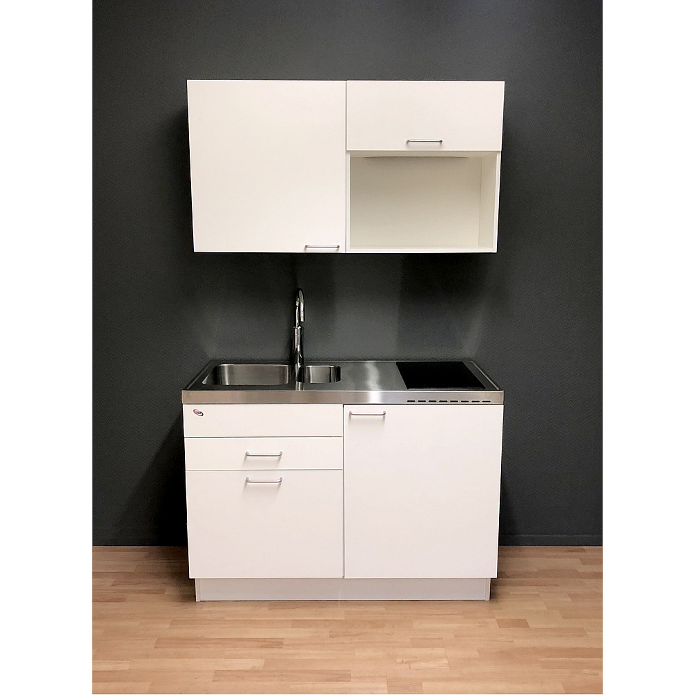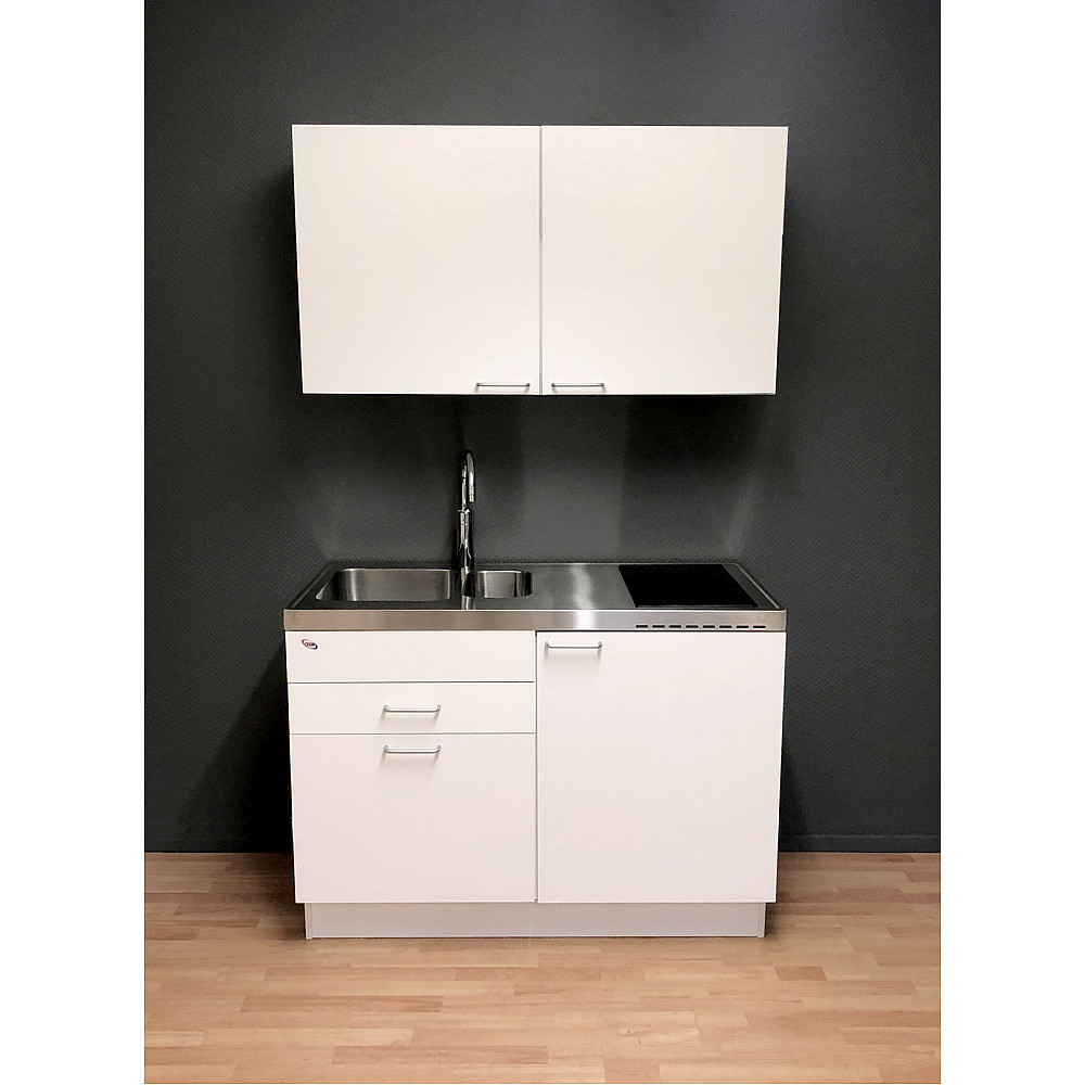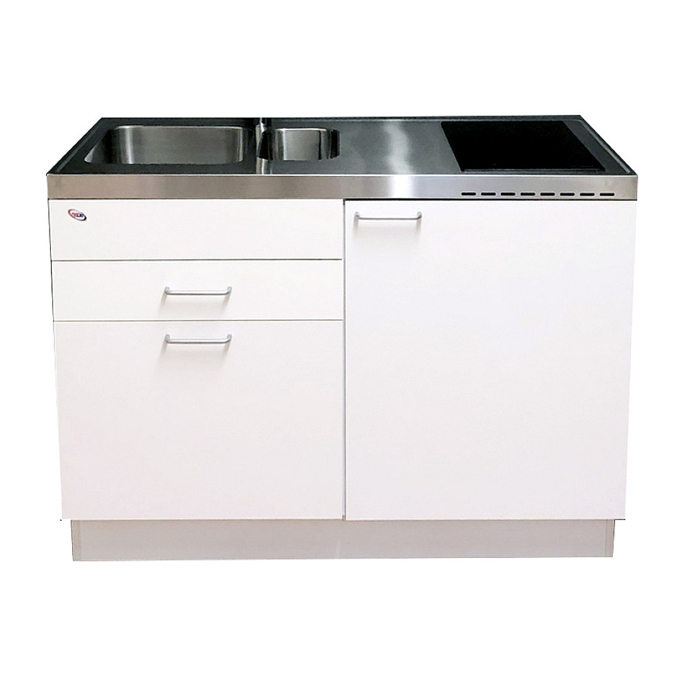 BTK-1221-01-V (diskho till vänster) är ett fullt utrustat trinettekök som kombinerar funktion, design och kompakt format perfekt för mindre boenden, kontor, gästhus eller studentlägenheter. Köket levereras helt färdigmonterat för snabb och enkel installation. Kylskåpet ansluts med en jordad stickpropp, medan fast installation rekommenderas för den integrerade hällen.
