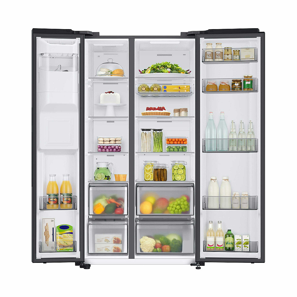 Generös kapacitet med dubbeldörrar. Med en total volym på 635 liter får du gott om plats för hela familjens behov. Kyldelen rymmer 417 liter och frysen 218 liter, vilket gör det enkelt att organisera både vardagsmat och större inköp. Dubbeldörrarna ger bra överblick och smidig åtkomst till alla hyllor och lådor.