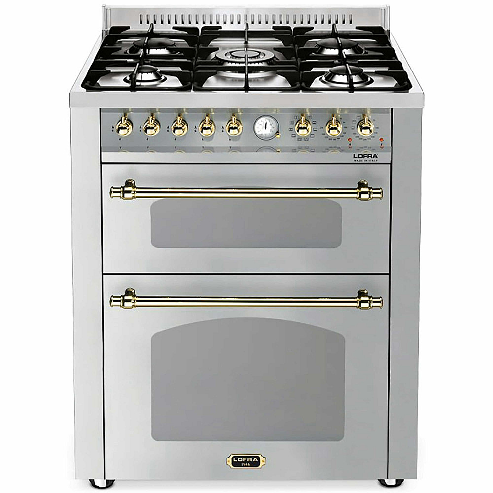 Specifikationer. Lofra Dolce Vita gasspis har en bredd på 70 cm och är utförd i rostfritt stål med mässingsdetaljer. Spisen är utrustad med 5 gasbrännare inklusive kraftfull mittbrännare samt wok support. Den har två ugnar där huvudugnen rymmer 70 liter med multifunktion och sidougn 40 liter med grillfunktion. Spisen är godkänd för gastyperna G20 och G30.