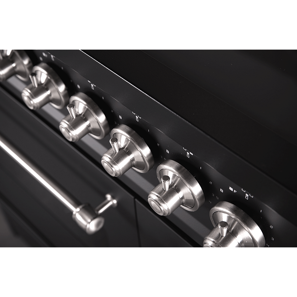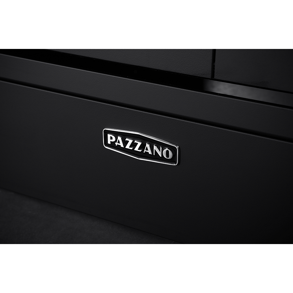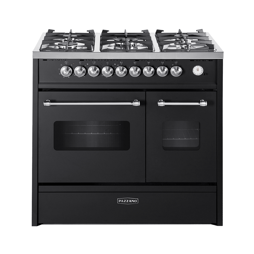 Specifikationer. Pazzano Cuore gasspis 90 cm i svart finish med detaljer i borstat stål. Spisen har fem gasbrännare inklusive central wokbrännare samt stabila gjutjärnsgaller. Två elektriska ugnar med multifunktionsugn 55 liter och statisk ugn 25 liter. Ugnsluckor med trippelglas och avtagbart innerglas. Praktisk förvaringslucka i fronten. Kompatibel med både naturgas och gasol.
