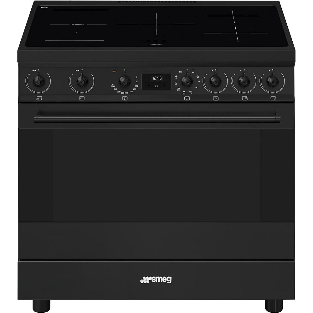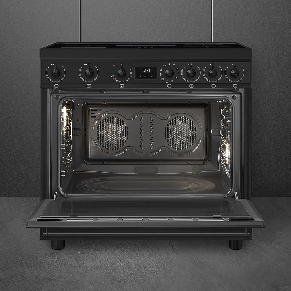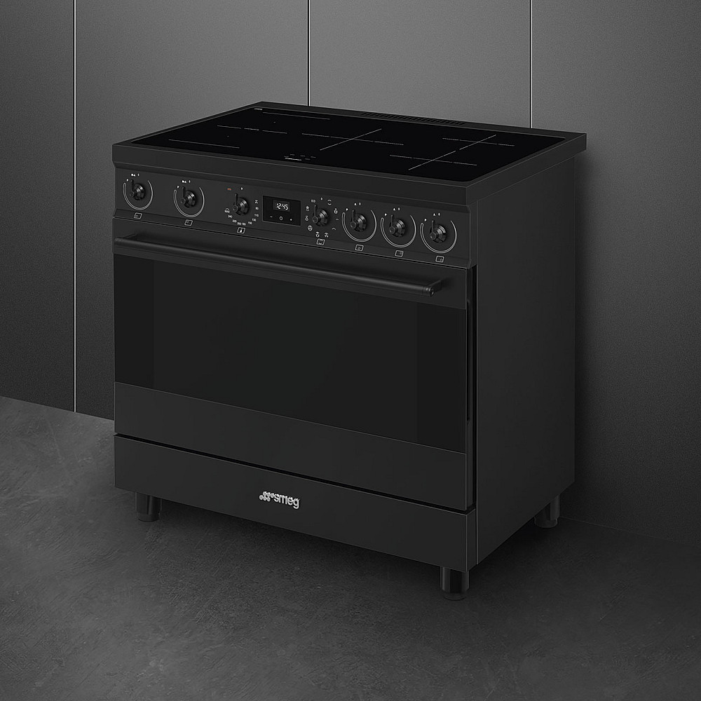 Smeg induktionsspis 90 cm i mattsvart med stor varmluftsugn och flexibel induktionshäll