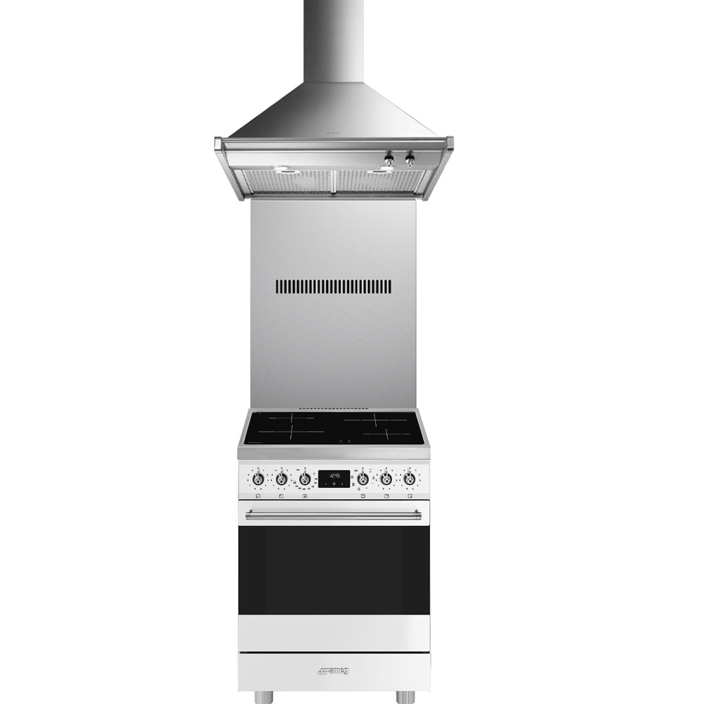 Smeg - Vit elegant induktionsspis med stänkskydd och rostfri fläkt