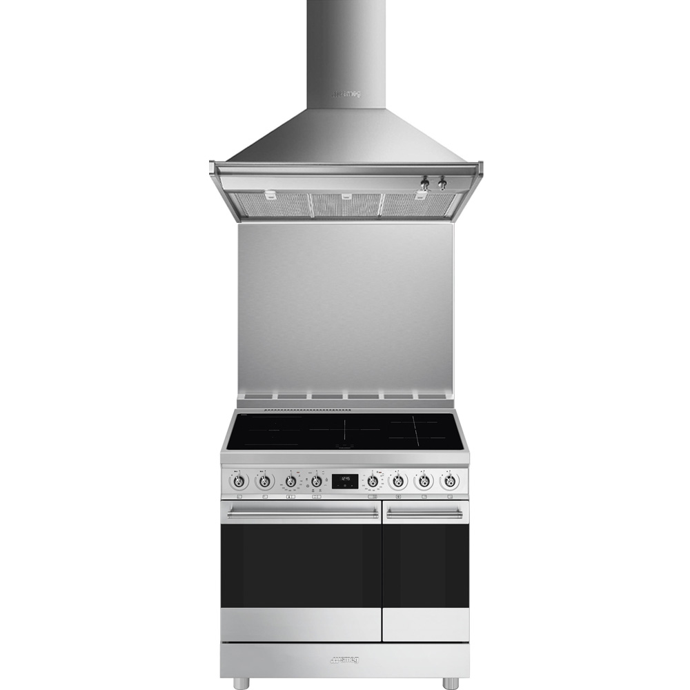 Smeg - 90cm bred induktionsspis med dubbelugn,stänkskydd och fläkt