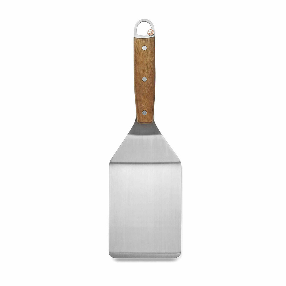 Specifikationer. Stekspade i rostfritt stål och akaciaträ. Bladets mått 14 x 11 cm och handtagets längd 15 cm. Passar för smashburgare samt grillning av kött, fisk och grönsaker. Handdisk rekommenderas.